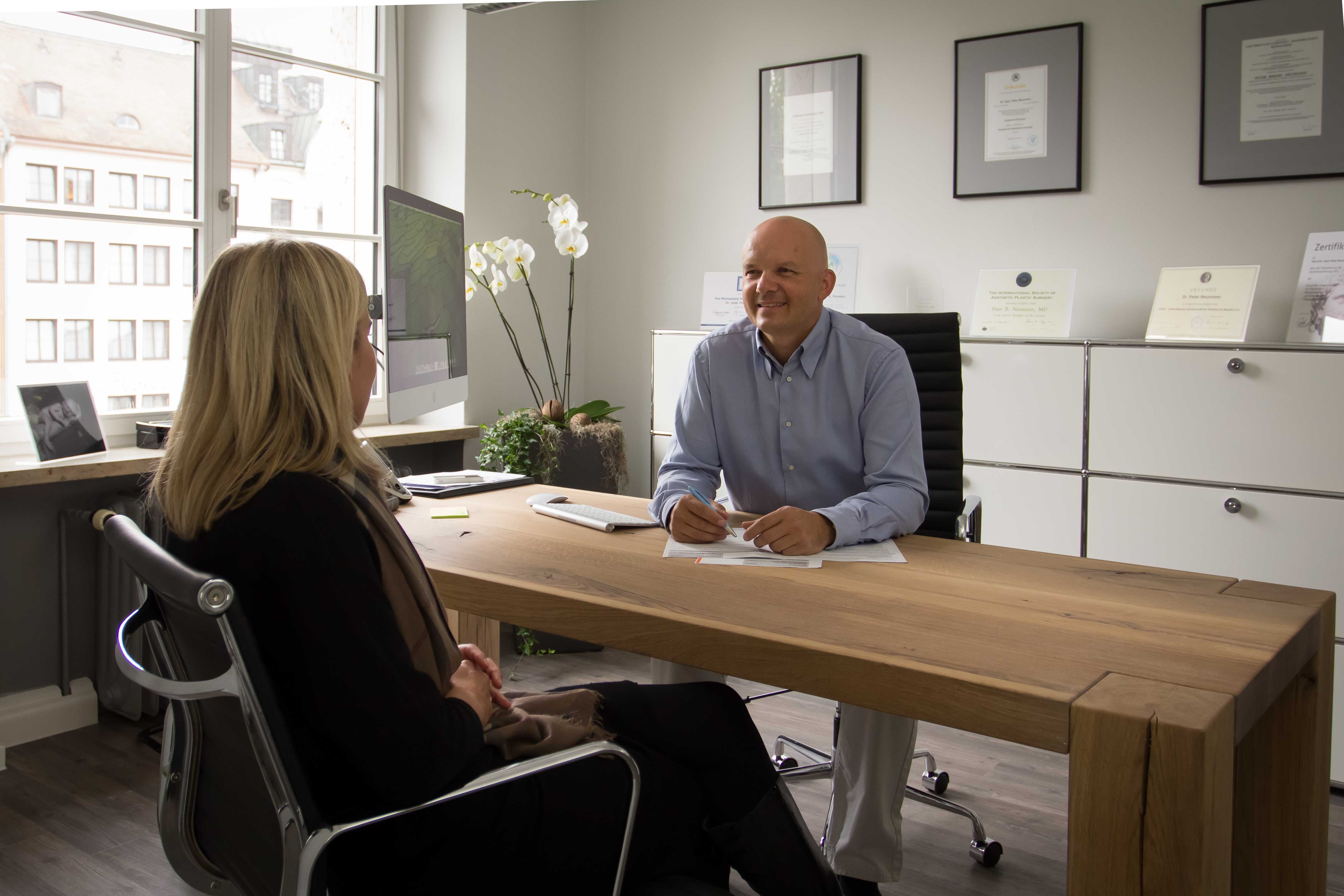 Der erste Schritt zu einer erfolgreichen Nasen-OP ist ein ausführliches Beratungs- und Aufklärungsgespräch, um Ihre Wünsche, Ziele und Erwartungen zu besprechen. In diesem Gespräch erklärt er Ihnen auch alle operativen Möglichkeiten, die Ihnen zur Verfügung stehen.